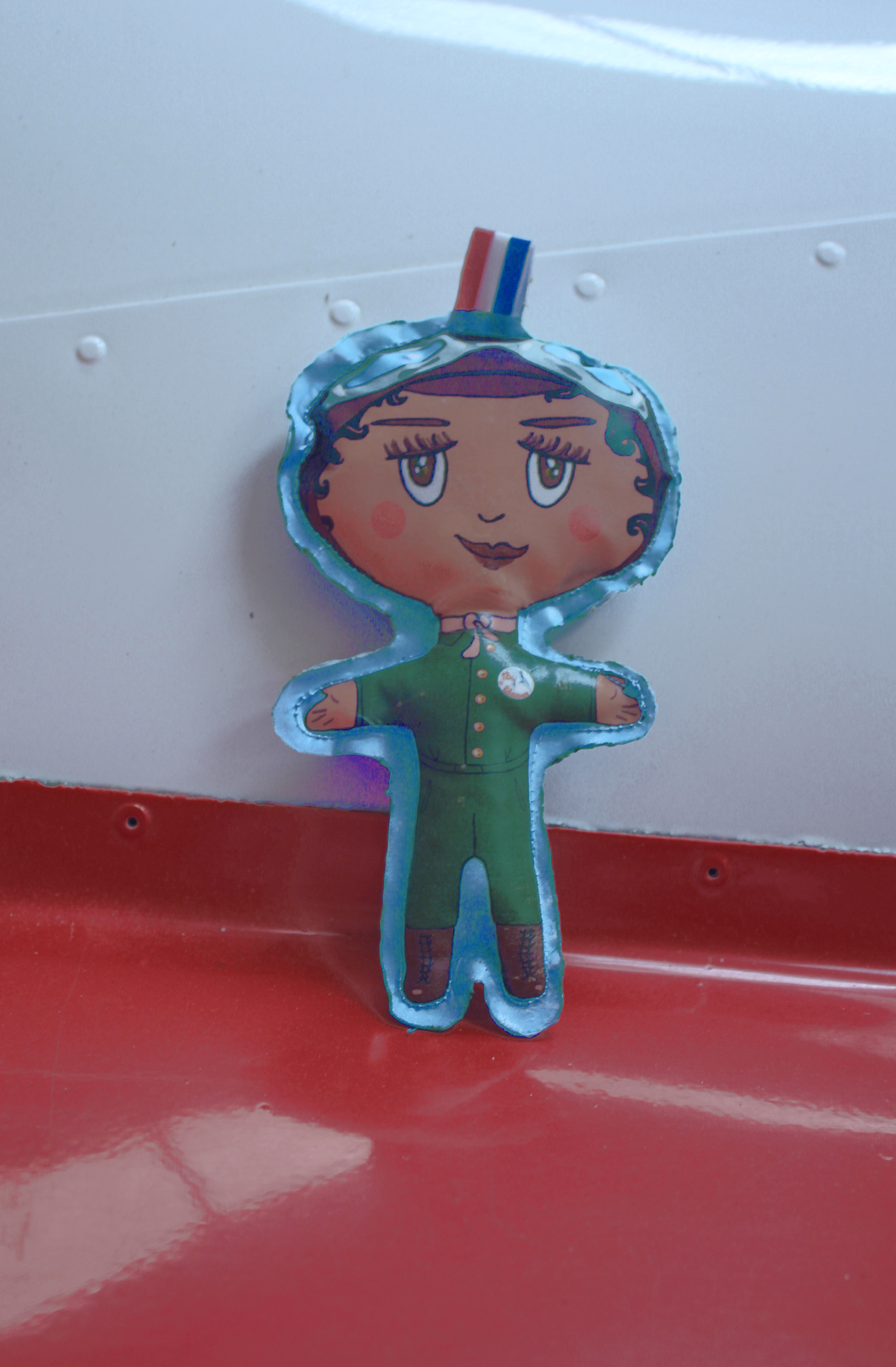 Ici, le prototype de ce mini doudou et porte-clé rendant hommage à cette jeune femme très décidée – qui avait dû traverser l’Atlantique, quitter son pays, encore sous le joug moral de la ségrégation raciale, pour devenir pilote d’avion.