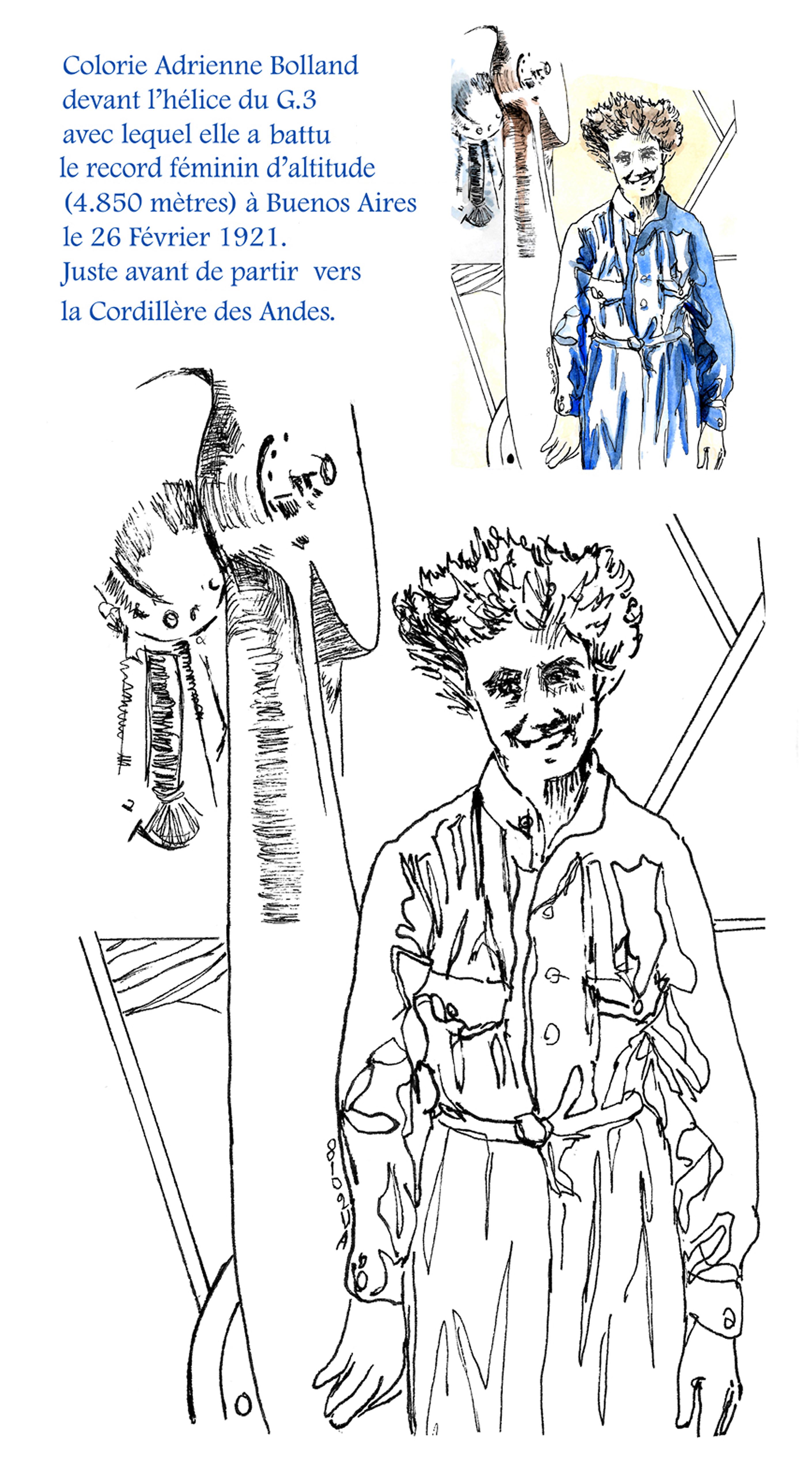 Carte Postale Adrienne Bolland à Buenos-Aires, à colorier.