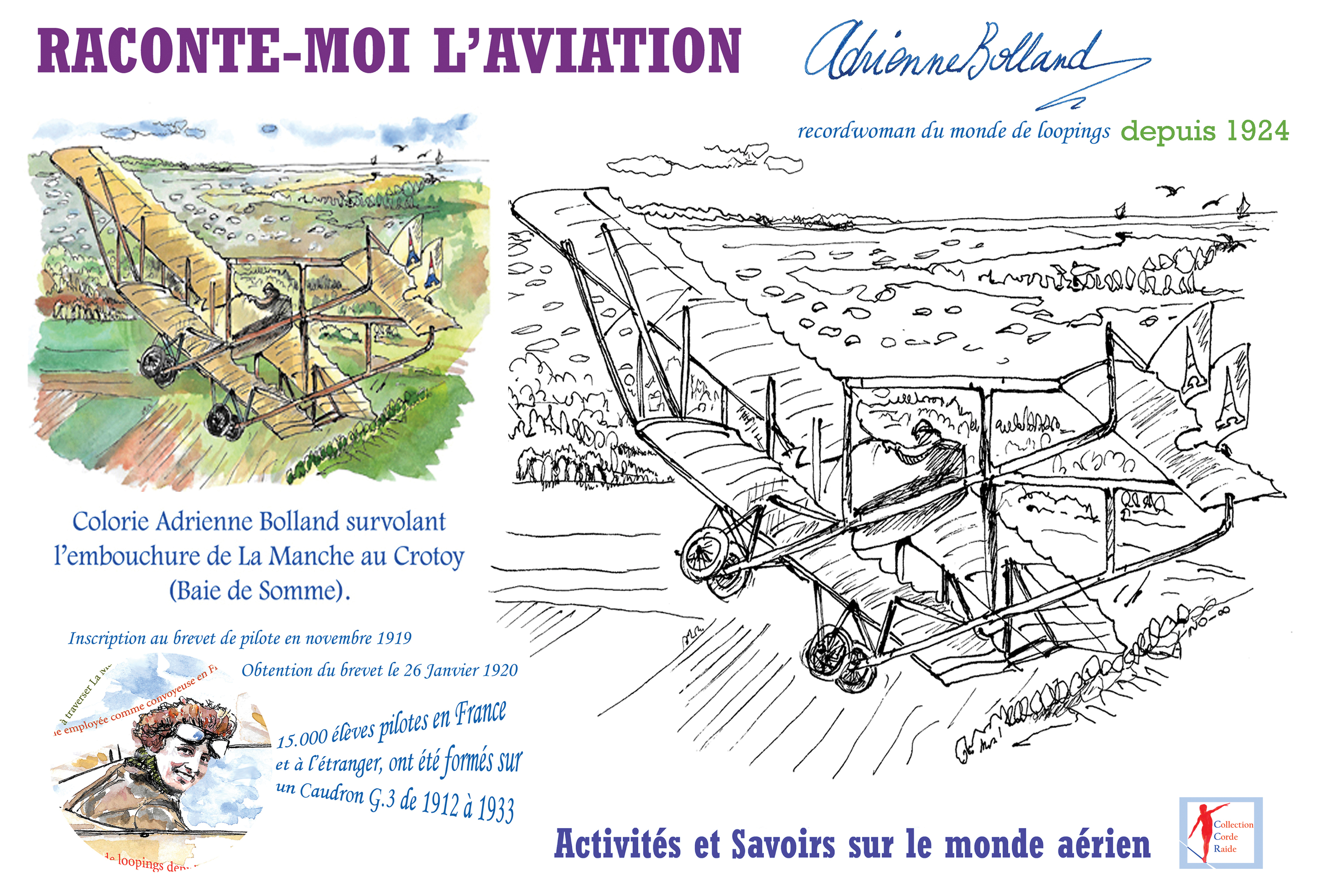 Carte Postale Adrienne Bolland à Buenos-Aires, à colorier. 17 x 11 cm, envoi gratuit.
