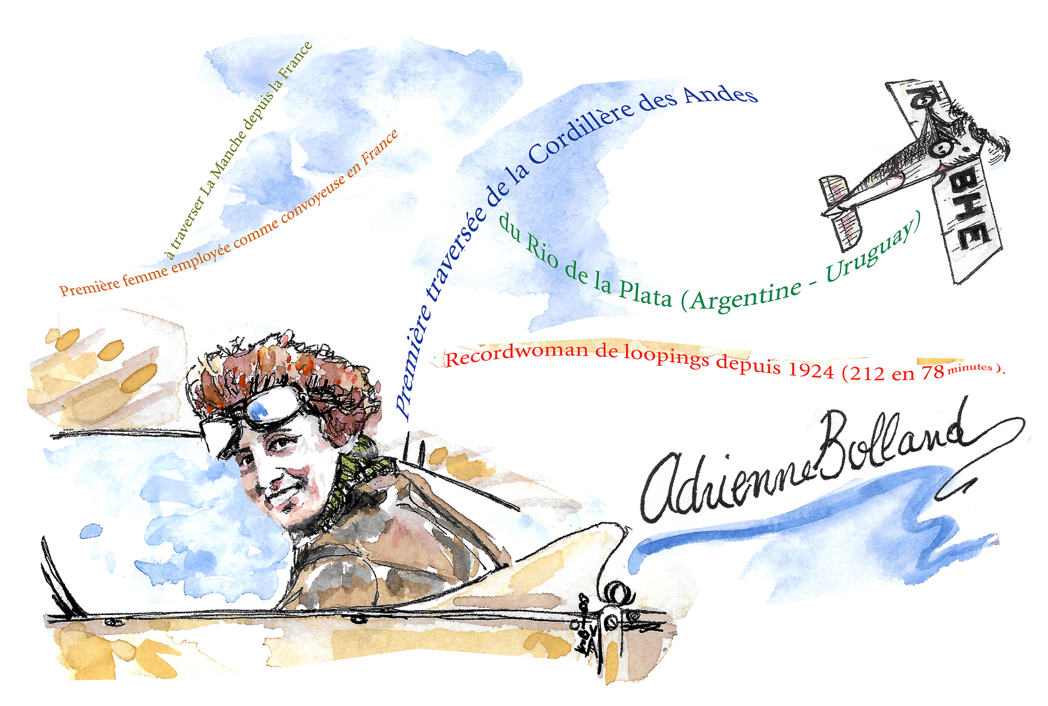 Carte Postale "les records d'Adrienne Bolland", 10 x 15 cm Envoi gratuit.