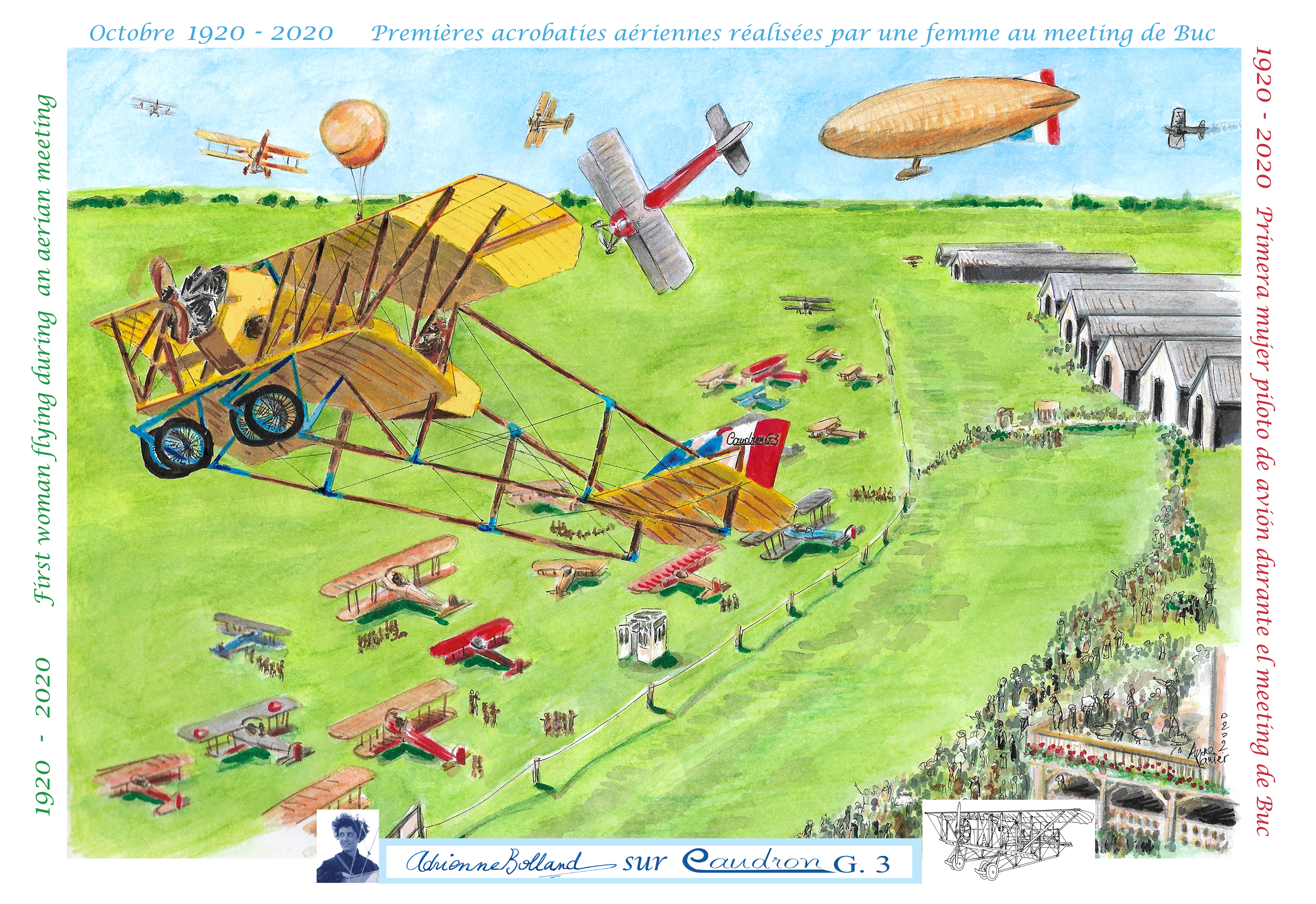 CPA Le Meeting international de Buc. Réalisation spéciale pour le centenaire. Édition limitée à 100 exemplaires. Papier glacé 350 gr, dos partagé, envoi gratuit. Dédicacée par Anne Vanier sur demande.