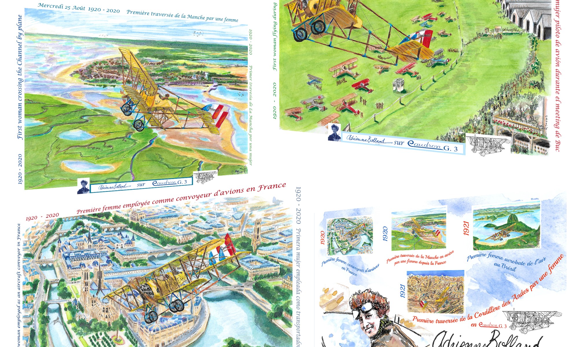 CPA Survol du Crotoy Traversée de la Manche. Réalisation spéciale pour le centenaire. Édition limitée à 100 exemplaires. Papier glacé 350 gr, dos partagé, envoi gratuit. Dédicacée par Anne Vanier sur demande.